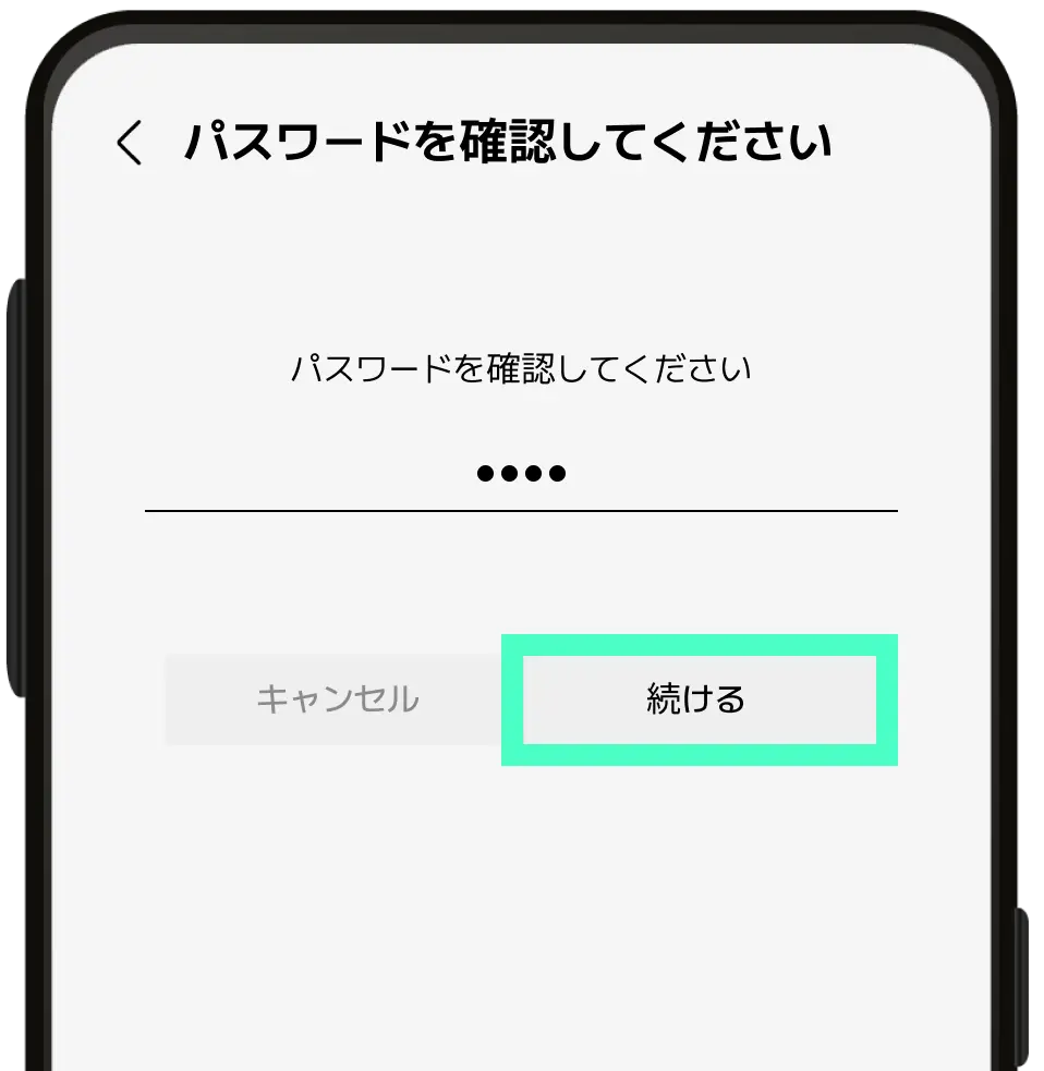 パスワードを入力し、続けるを選択して、デバイスを再起動してください。