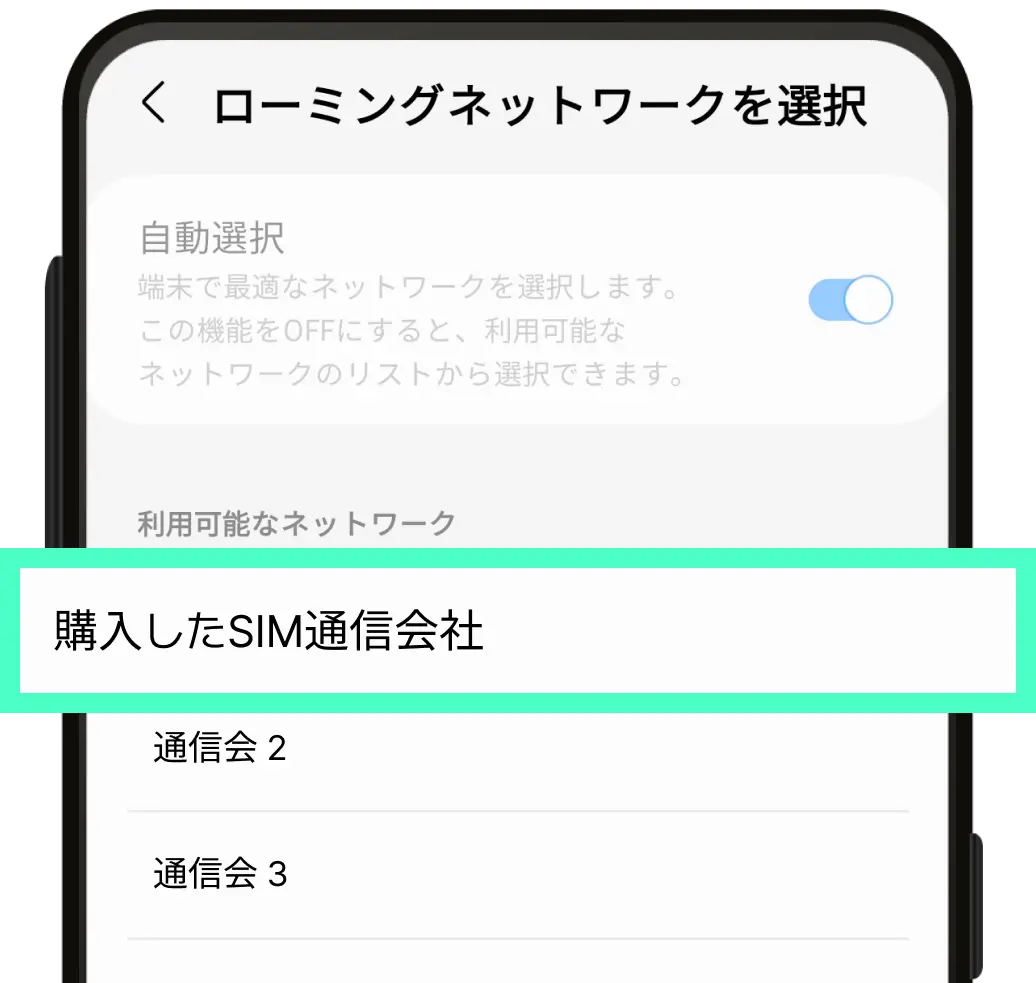 eSIMをアクティベートすると、ほとんどのスマートフォンは自動的にキャリアのネットワークに接続されますが、周囲の状況によっては接続がすぐに行われない場合があります。そのような場合は、現在の場所で利用可能なキャリアネットワークのリストを確認し、手動でeSIMキャリアを選択して接続を確立してください。キャリアが不明な場合や手動で選択したキャリアネットワークに接続できない場合は、ネットワークオプションに表示される各キャリアを一つずつ選択してみてください。