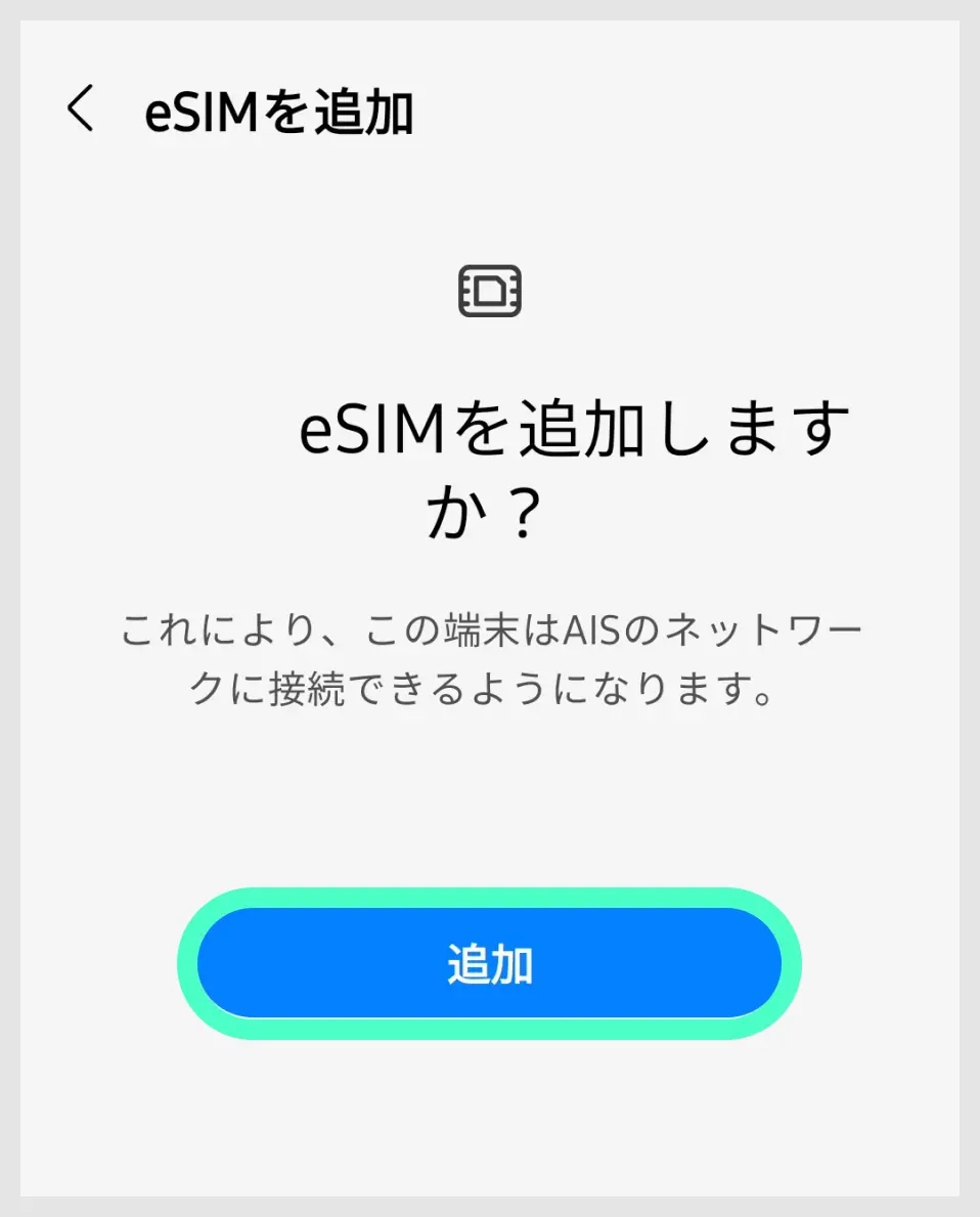 [eSIMを追加]が表示されたら、[確認]ボタンを押します。