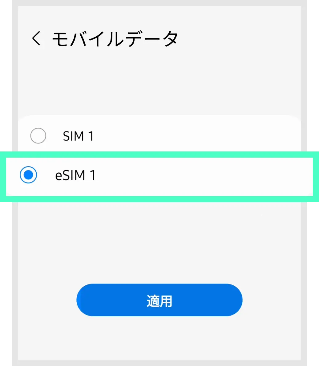 [モバイルデータ]を選択して、使用するeSIM料金プランを指定します。