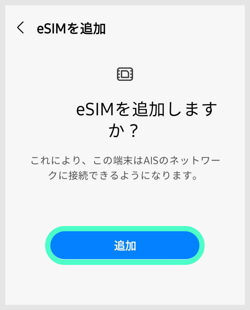 * プランを追加する過程で、別の画面に切り替えたり、eSimを削除したりしないように注意してください。